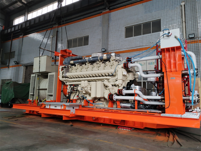Alternator is open coupled with the engine through a Vulkan high flexible coupling, both alternator and engine are solidly mounted on the base-skid with the isolators located under it to provide excellent effect of noise and vibration reduction. Sea water pump is mounted on the engine, loose-supplied heat exchanger is mounted on the front end of base-skid. To ensure safety of operation on an FPSO, two air shut off valves are upfitted on the engine and shall take actions automatically in case of either emergency or overspeed. Beyond the engine mounted electric starters, a second customer supplied IPU hydraulic starter is also provided on the engine, it can start the engine by three times totally when fully energized.