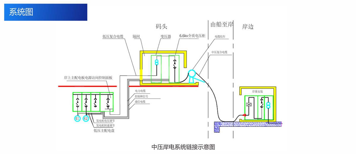 System design is essentially based on meeting port needs while also conforming to ICE/ISO/IEEE 8005 requirement. A configuration typically comprises key components such as cable reel, a medium voltage switchboard and a control and monitoring facility inclusive of an interface between ship and shore. A complete assembly can either be installed separately aboard a vessel or containerised for sitting a specific onboard location.